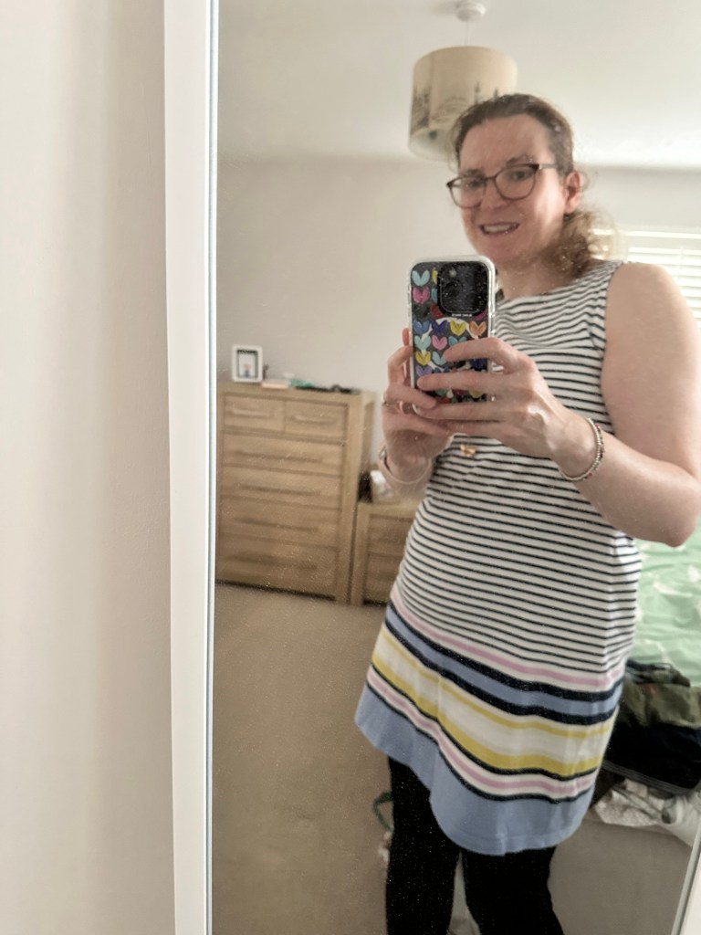 Mini Ugg boots – easy to slip on and can be worn inside and outside. Warm and cool at the same time. Provides more support for my feet. My previous ones were worn in pregnancy/ early motherhood (all the time).