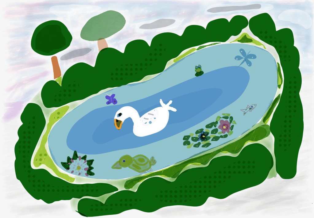I was inspired by a walk through our local park and seeing some beautiful ducks 🦆 flying over the pond. The male ducks were fighting for the attention of the female duck .