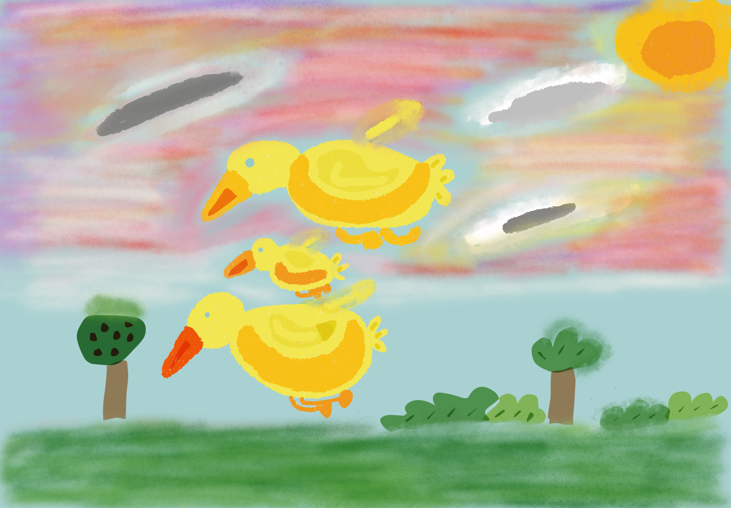 I created this drawing for my young family to show my daughter and husband how much they mean to me. Our little duck family.