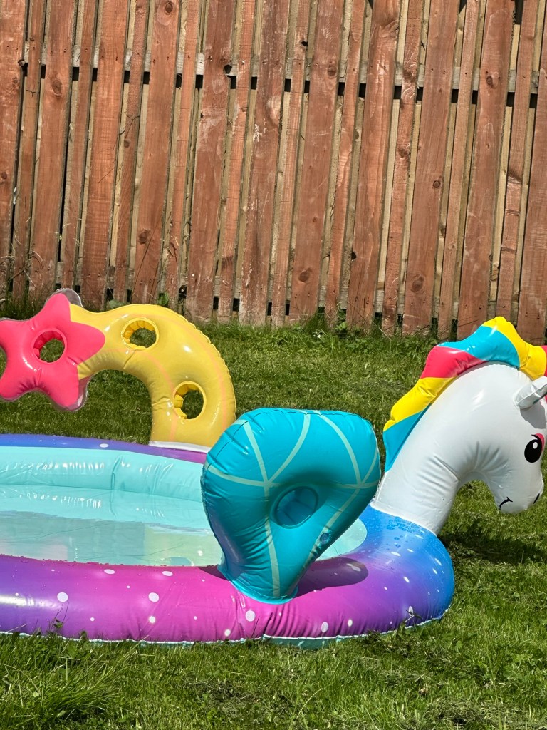Hours of fun in the sun. The best bit was we got it reduced in the spring sale at our local Argos. Today… we would not have got a bargain/ a pool. Glad we snapped up the deal and she loved it so much. Makes me happy when she smiles and plays.