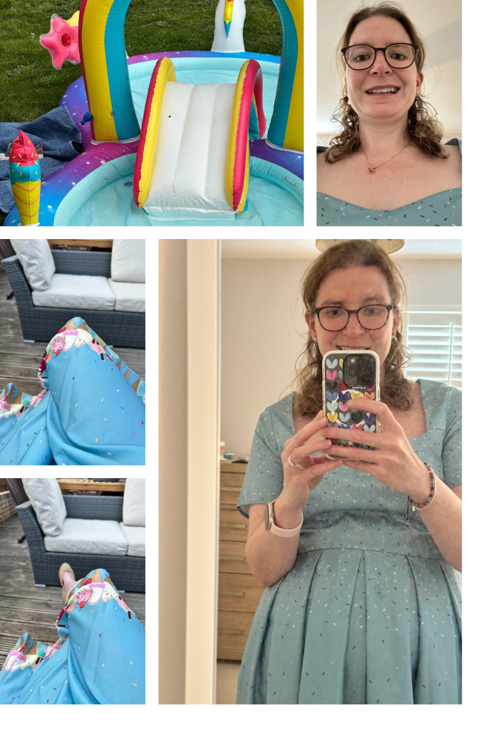I decided to make the most of the summer sun (too) and dress in my vintage inspired Ice Cream and sprinkles dress 👗 by Little Wings Factory (unfortunately no longer selling beautiful dresses). I do not get to wear it often. It’s special because my daughter chose it. I probably would not have chosen it myself, but it’s fun and cute 🥰. You only live once so why not wear fun things every now and then- helps support my recovery too.